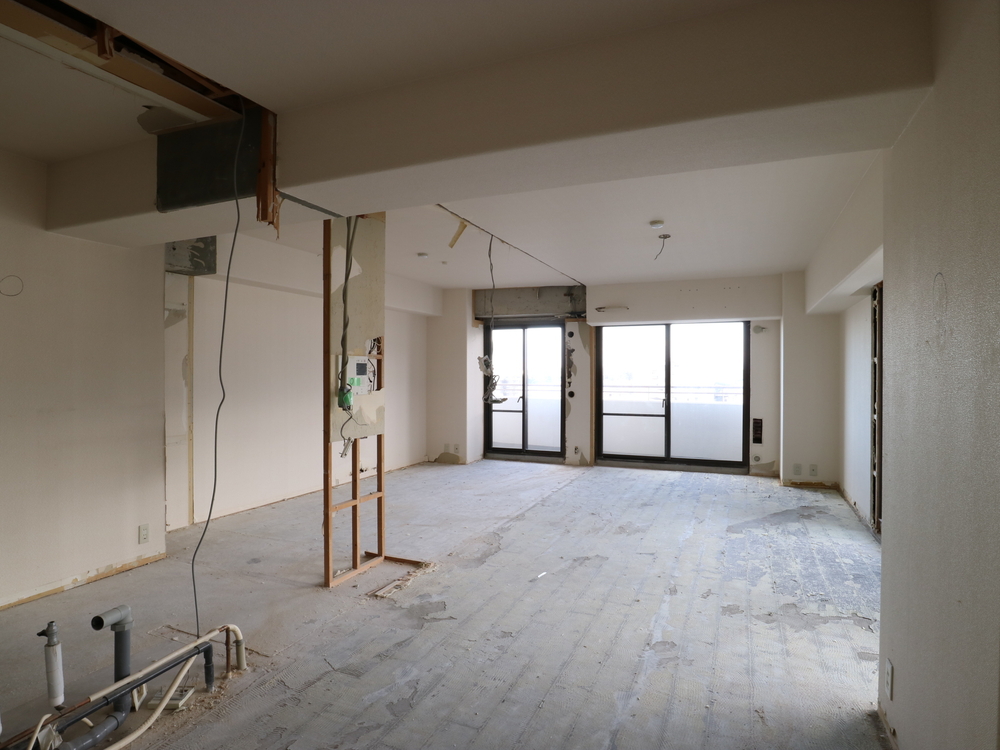 リビングの施工中