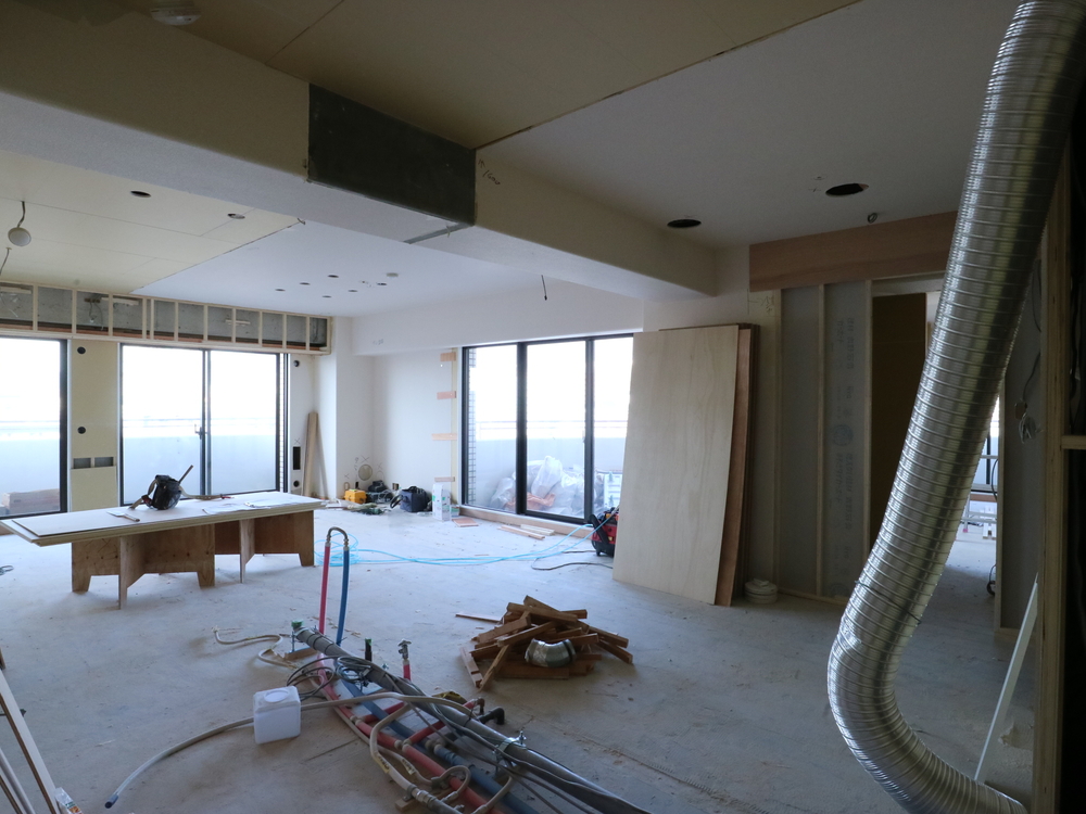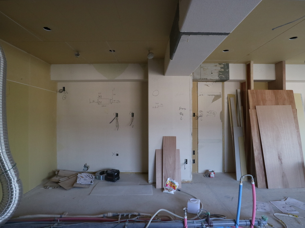 キッチンスペースの施工中