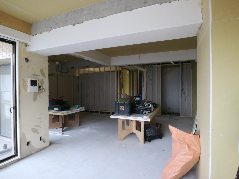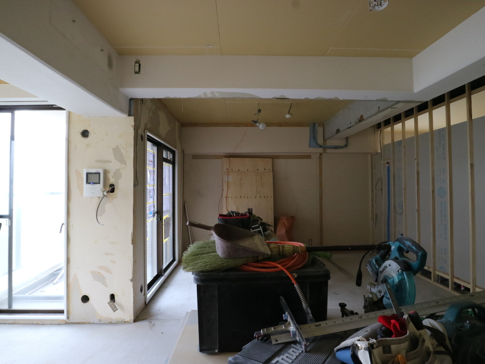 リビングの施工中