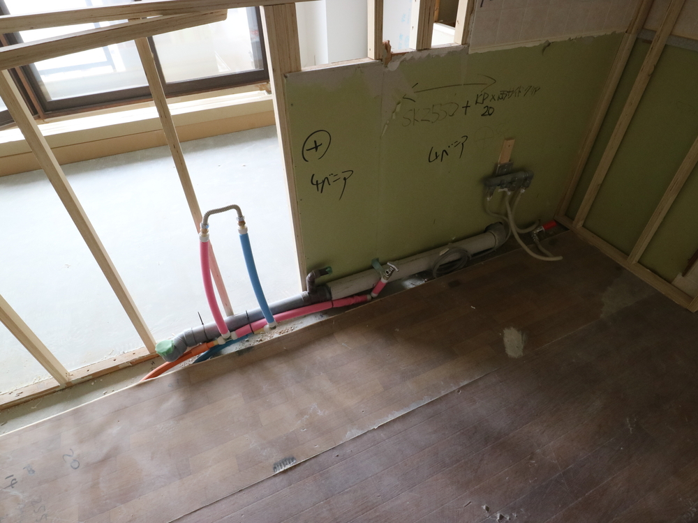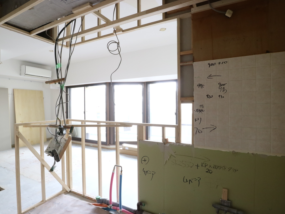 キッチンスペースの施工中