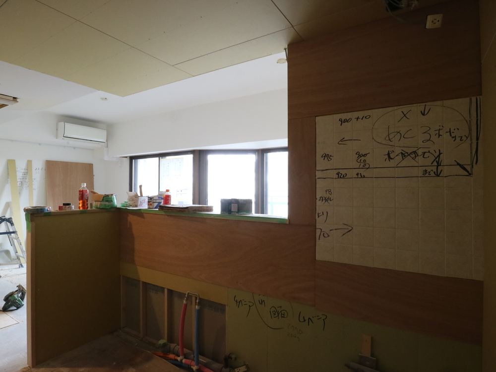 キッチンスペースの施工中