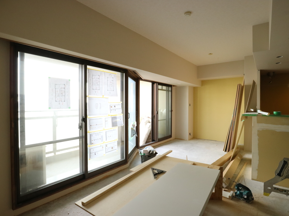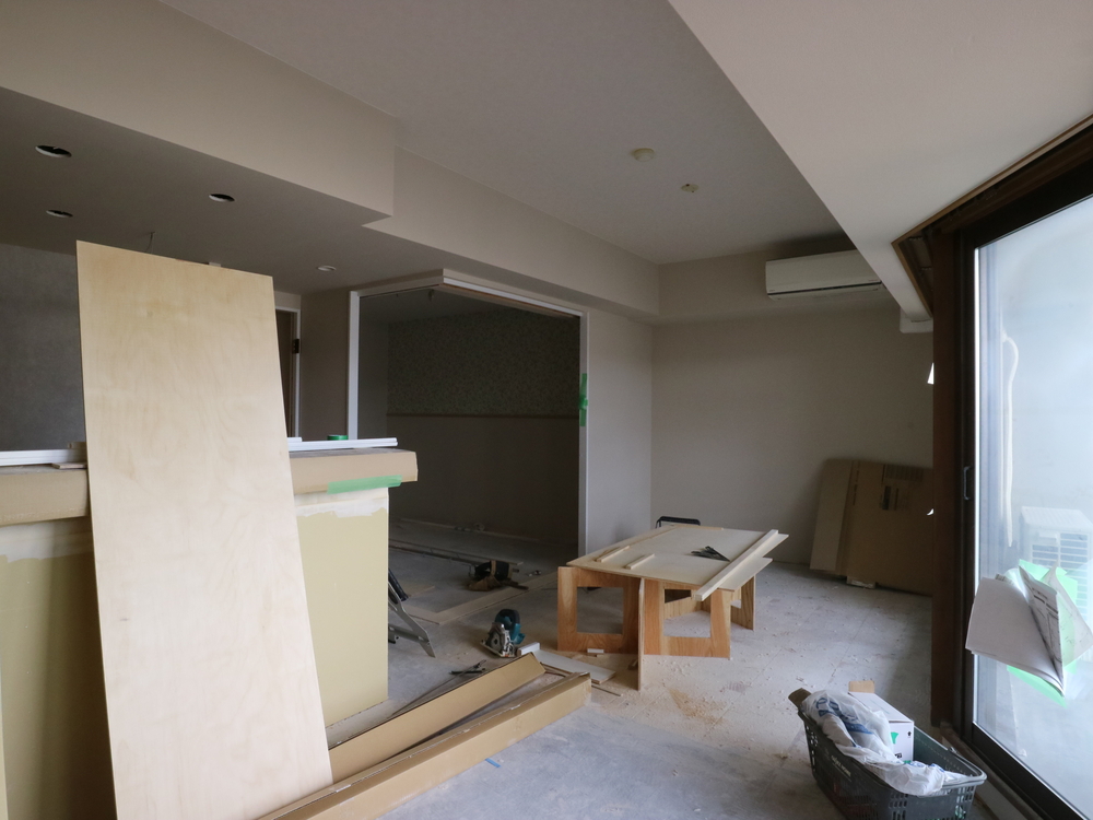 リビングの施工中