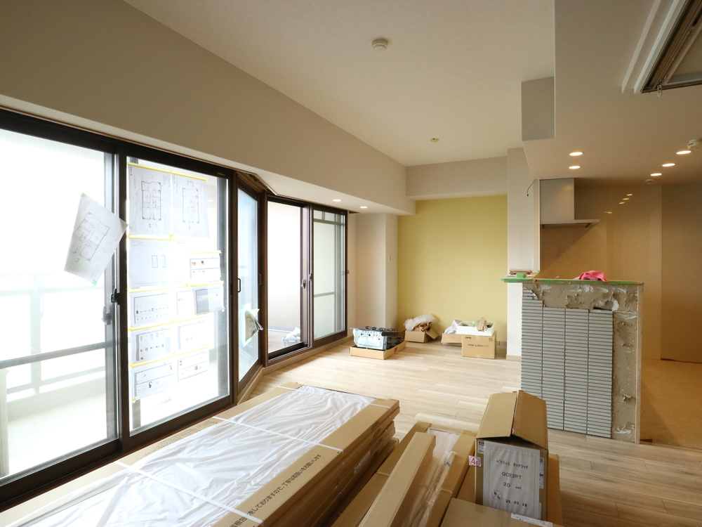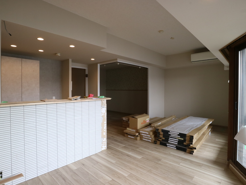 リビングの施工中