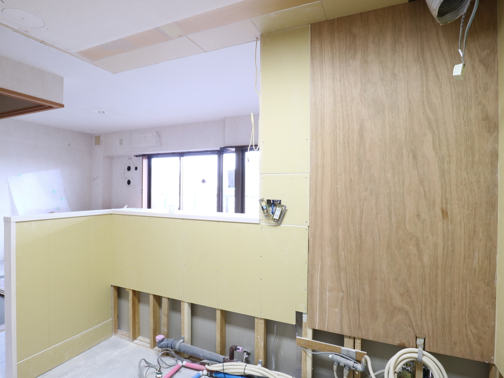 キッチンスペースの施工中