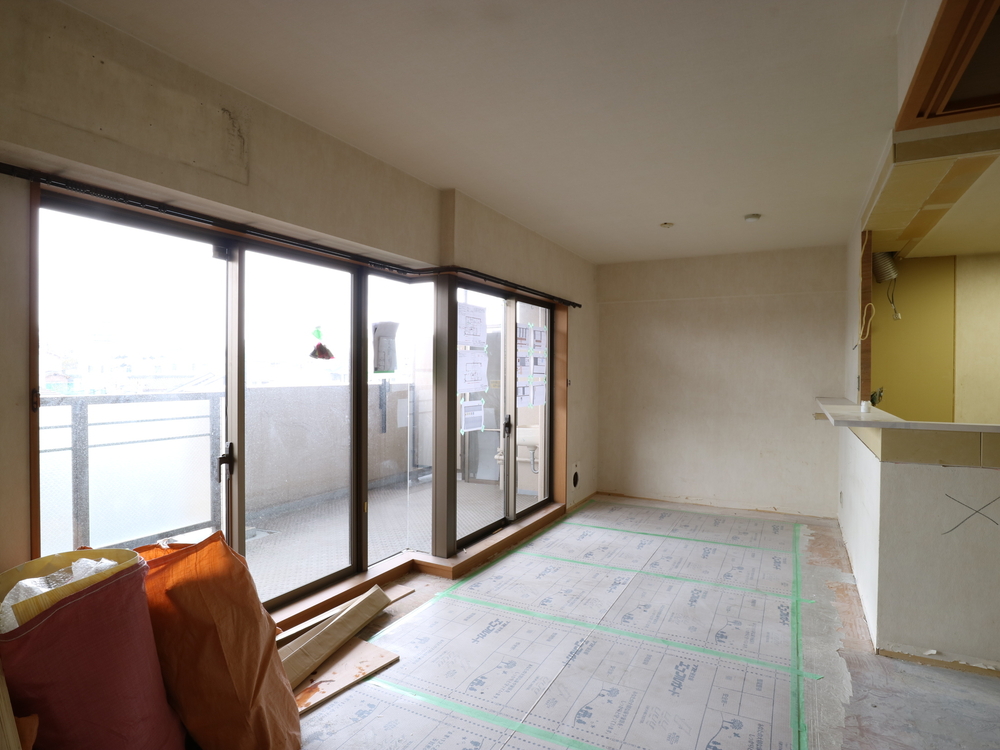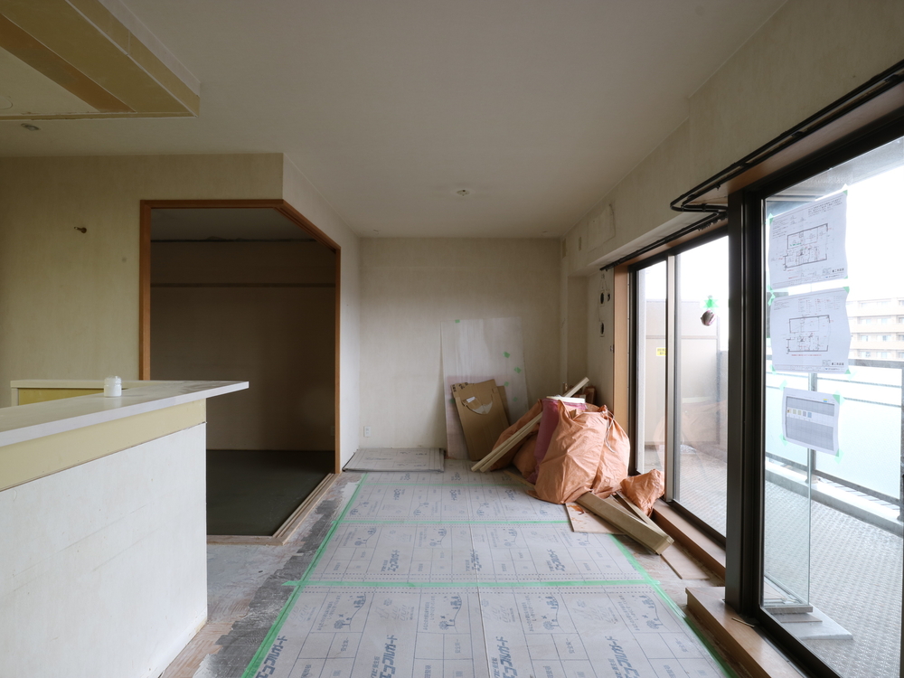 リビングの施工中