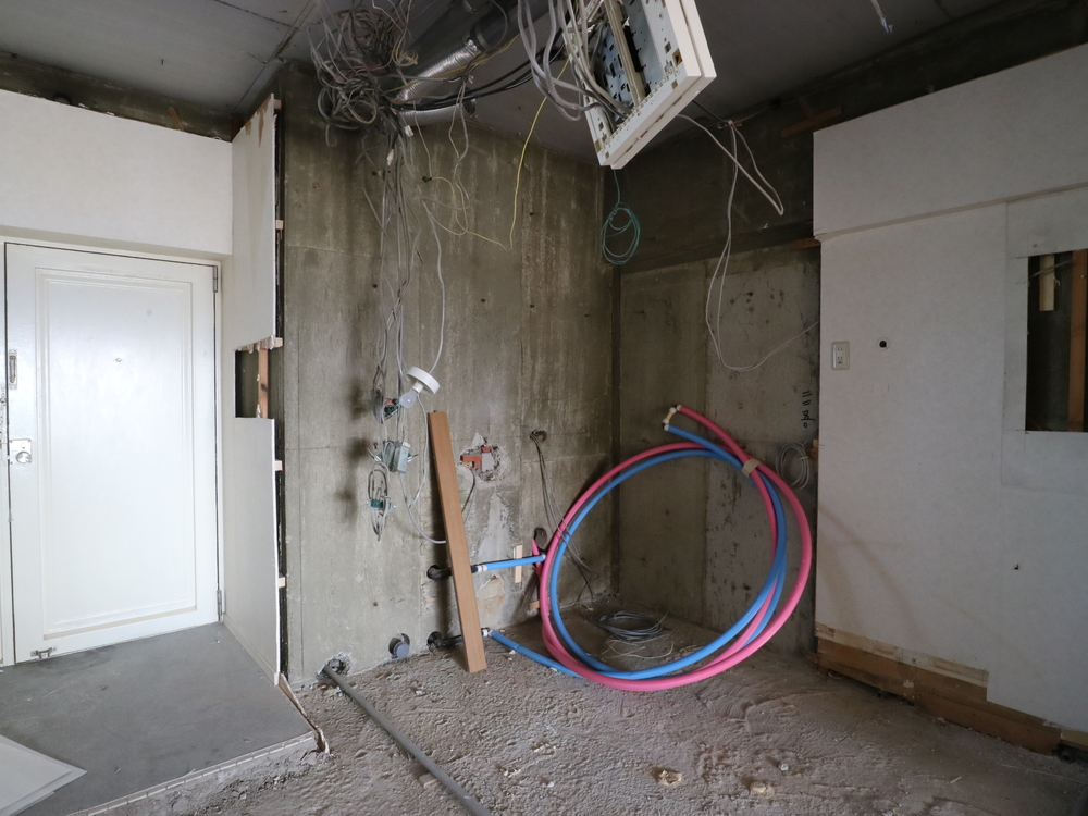 玄関の施工中