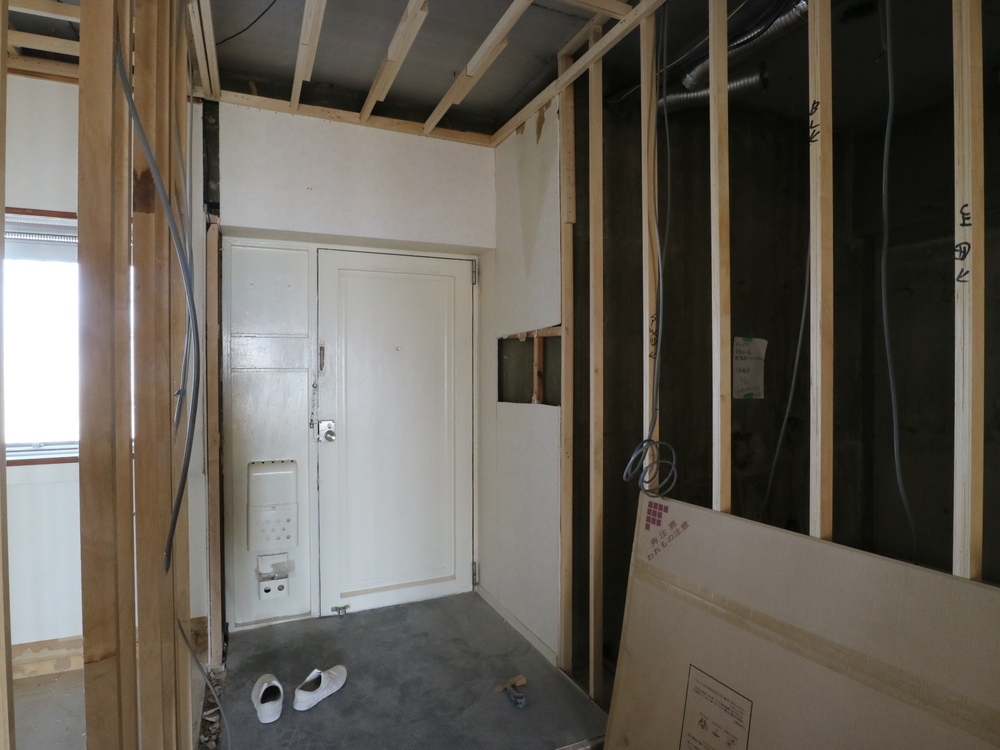 玄関の施工中