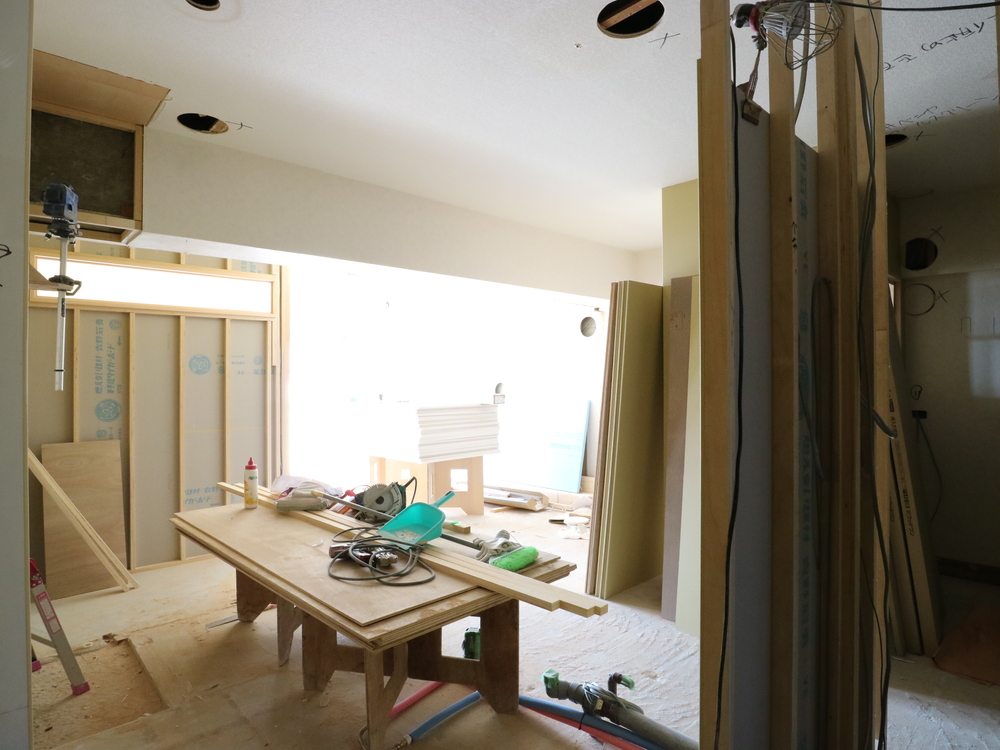 キッチンスペースの施工中
