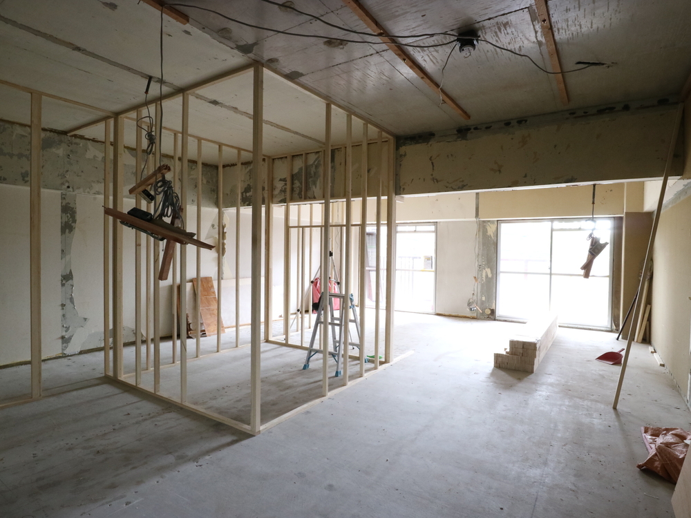 リビングの施工中