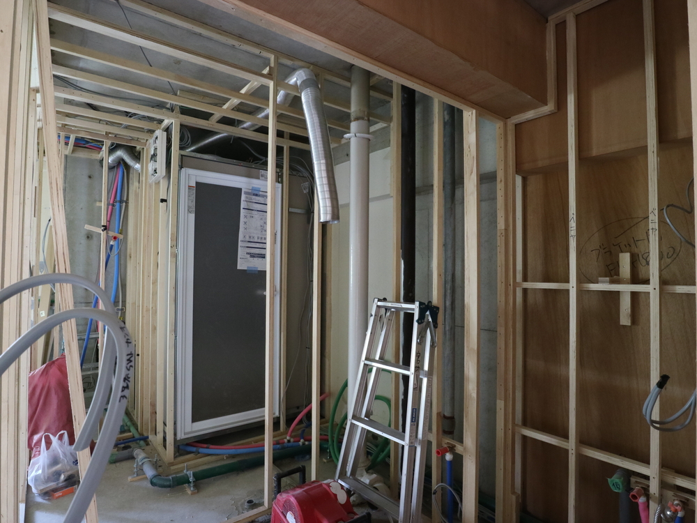 洗面室の施工中
