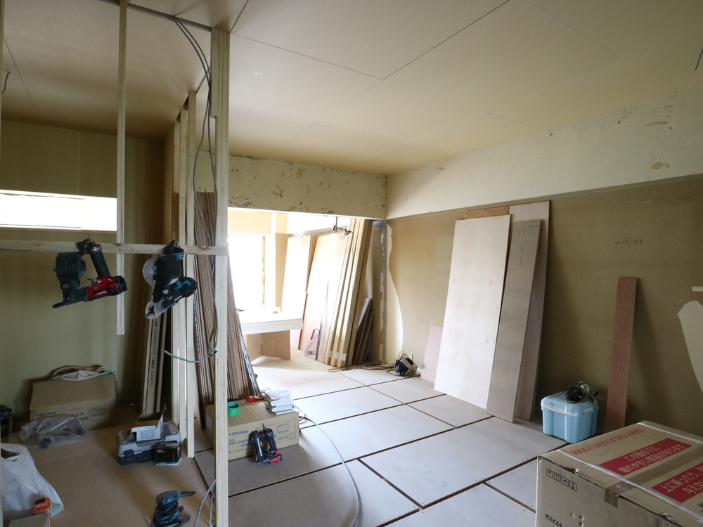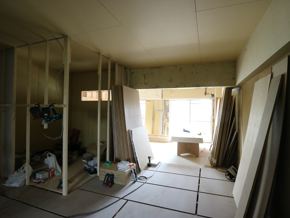 リビングの施工中