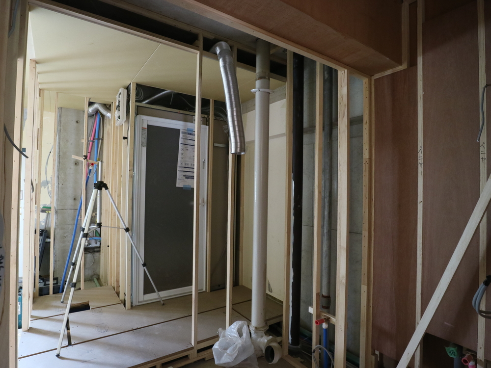 洗面室の施工中