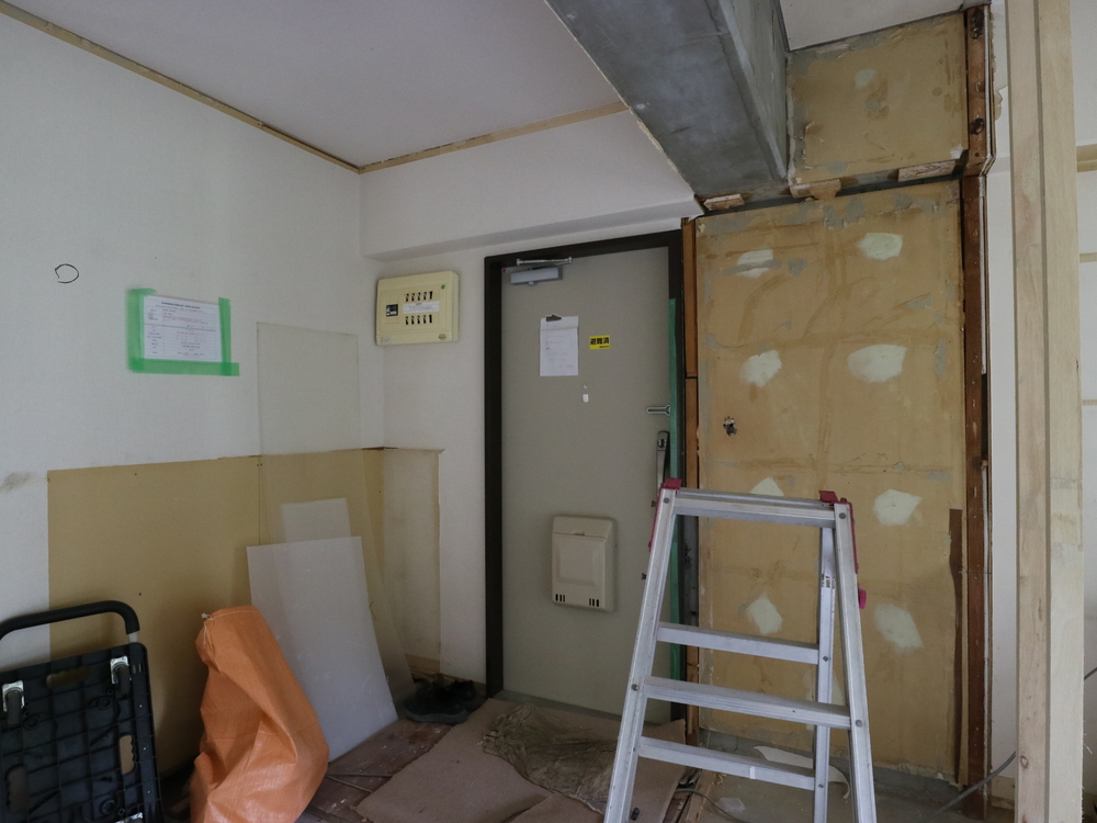 玄関の施工中