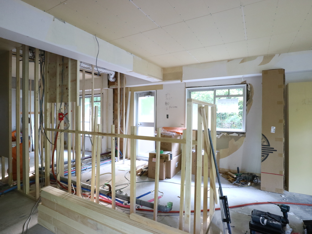 キッチンスペースの施工中