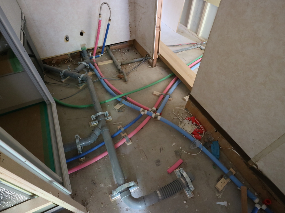 洗面室の施工中
