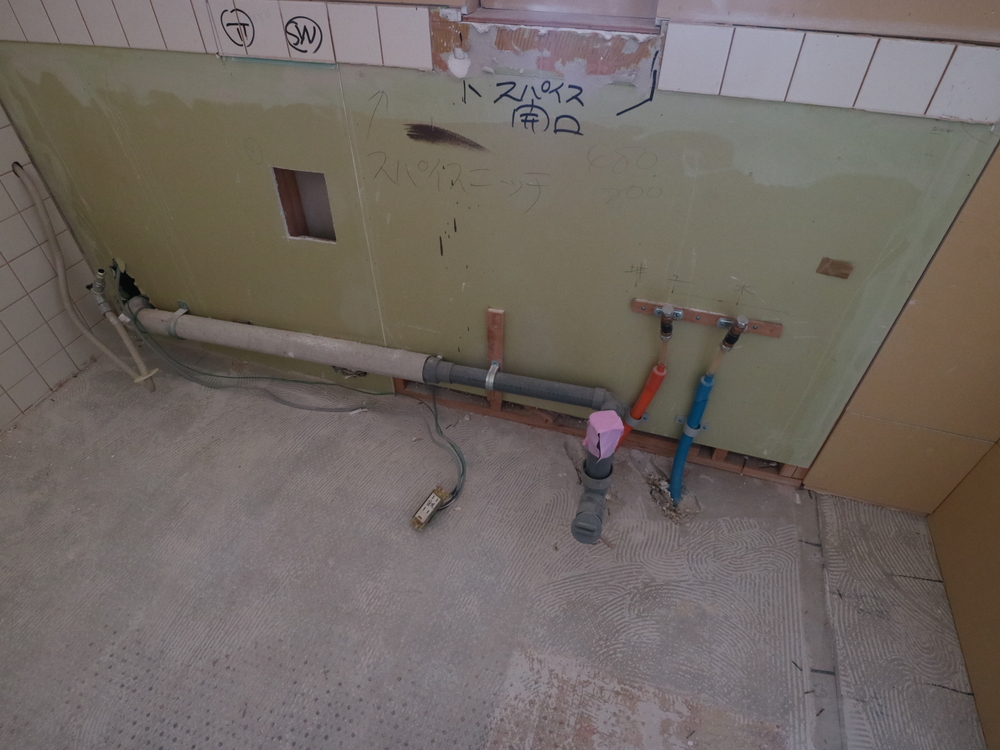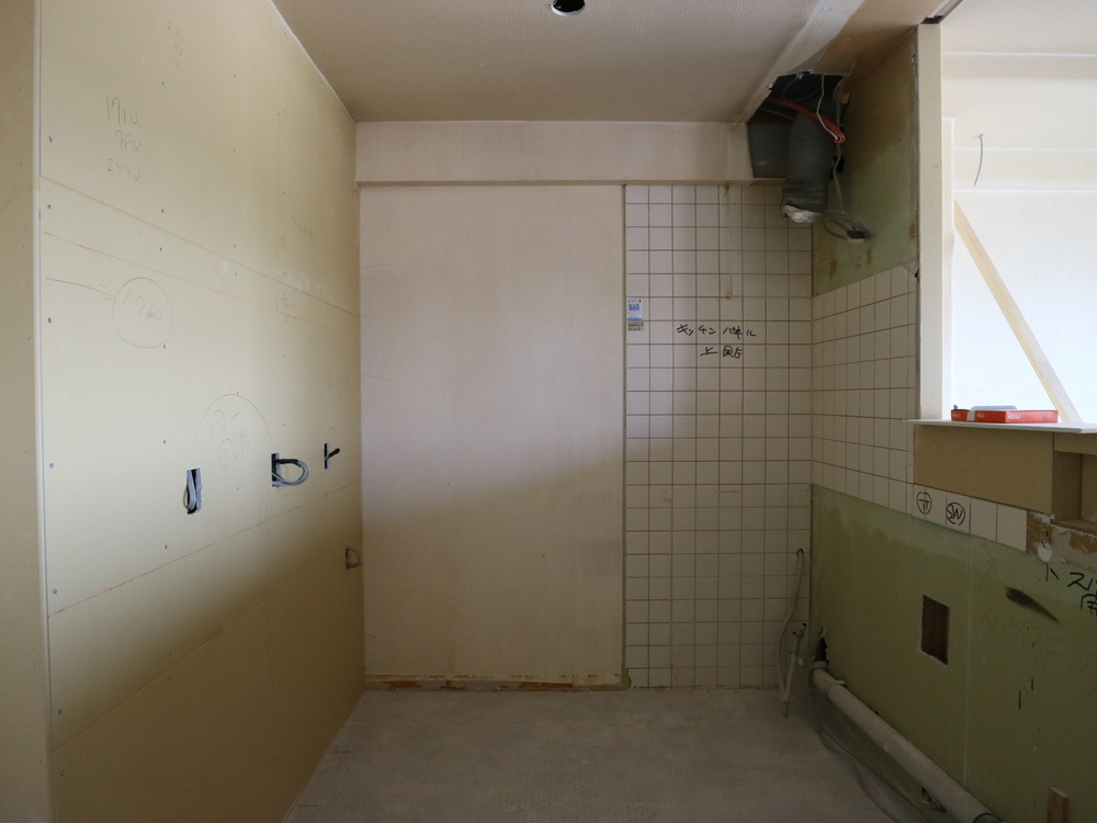 キッチンスペースの施工中