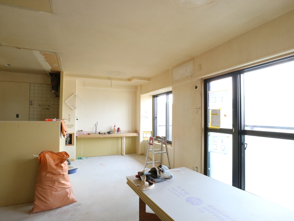 リビングの施工中