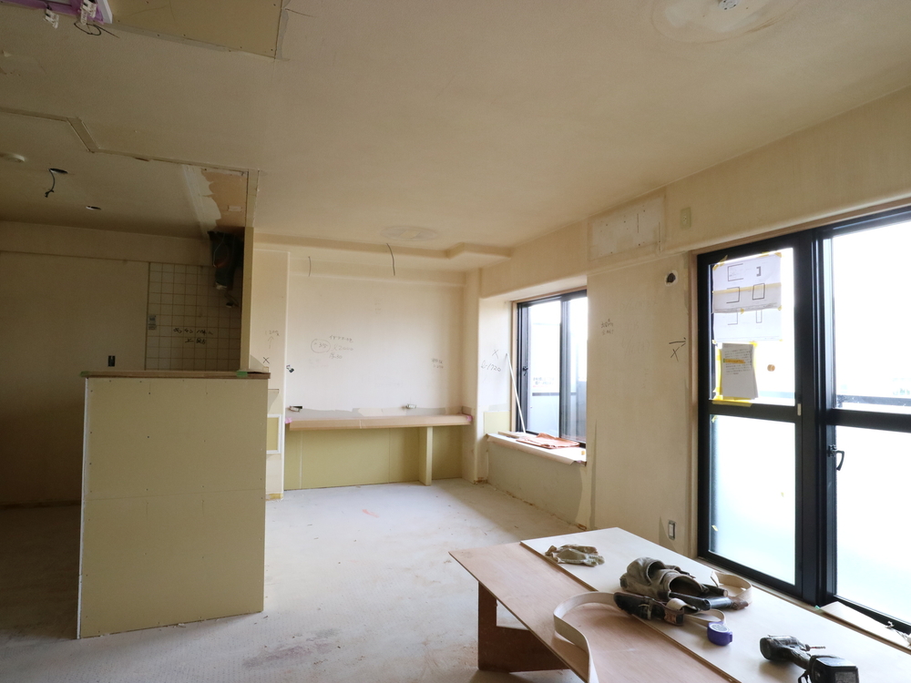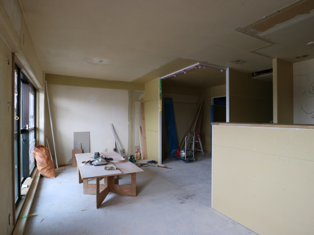 リビングの施工中