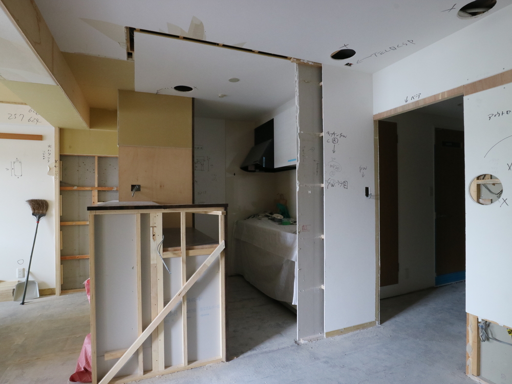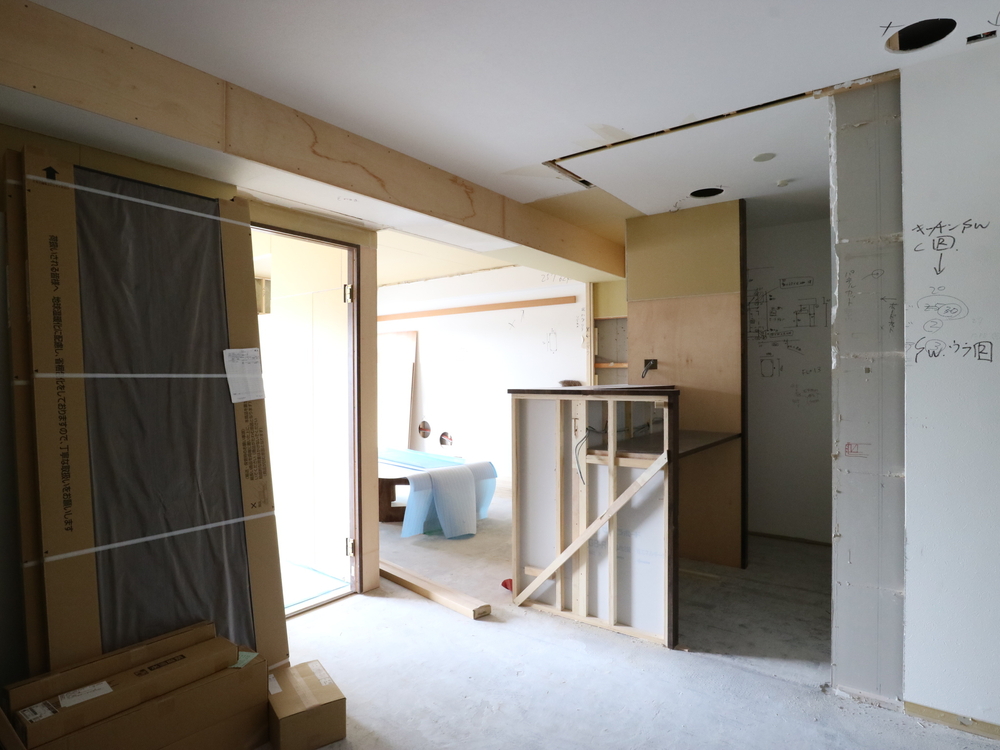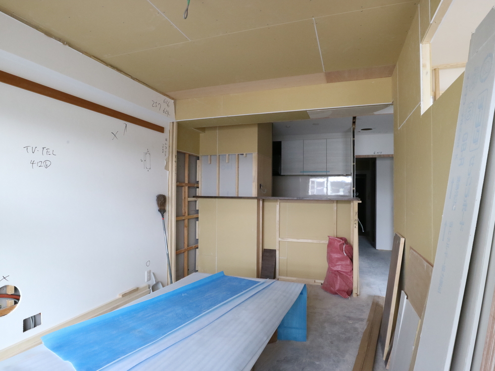 リビングの施工中