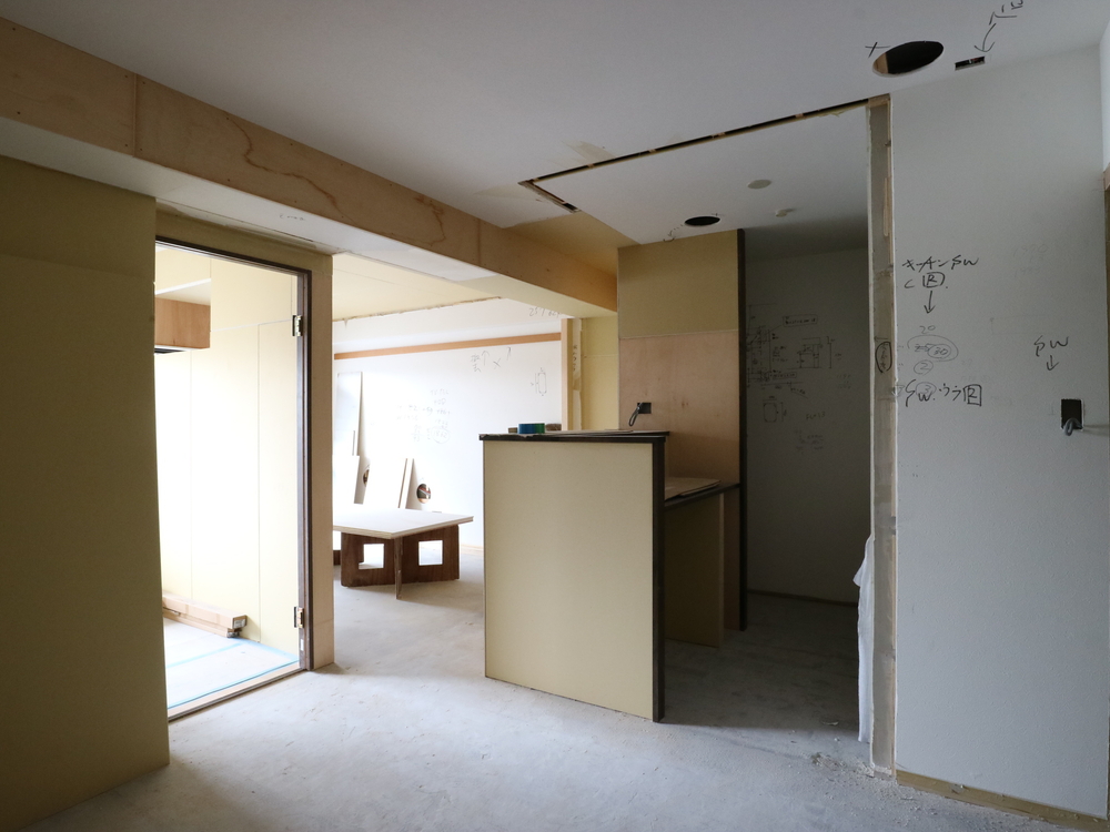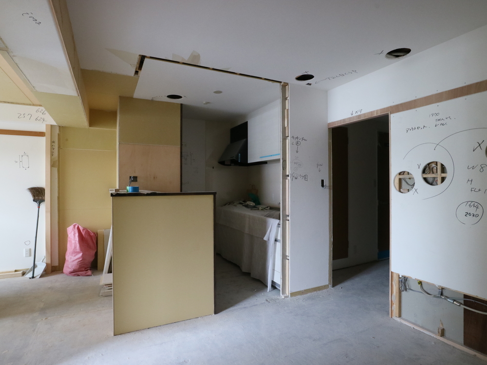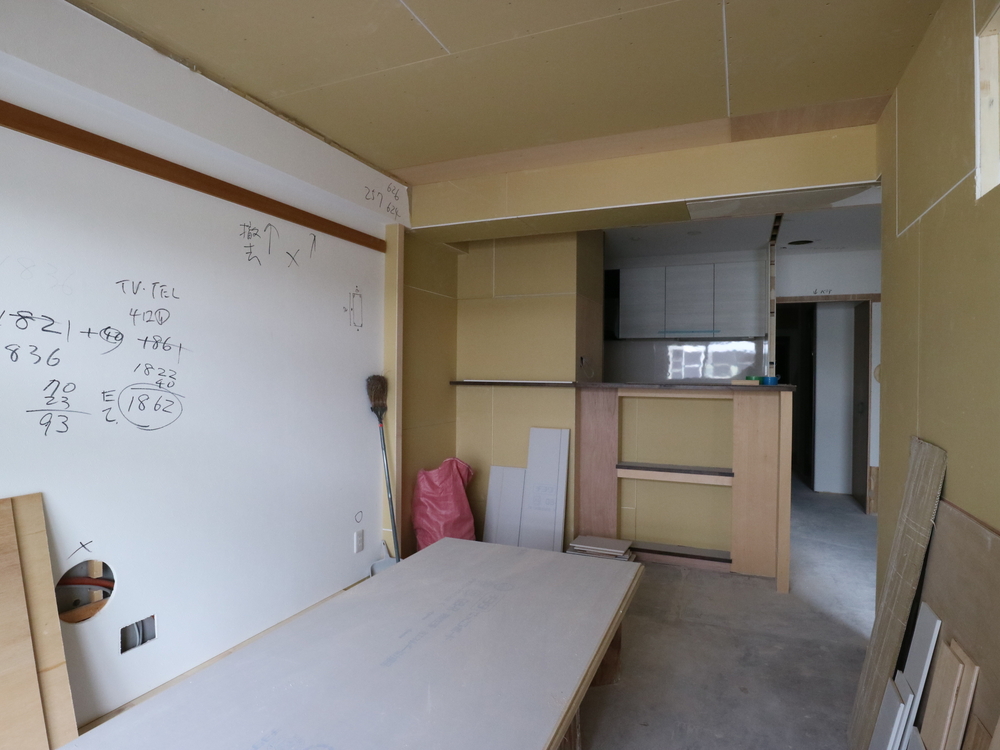 リビングの施工中