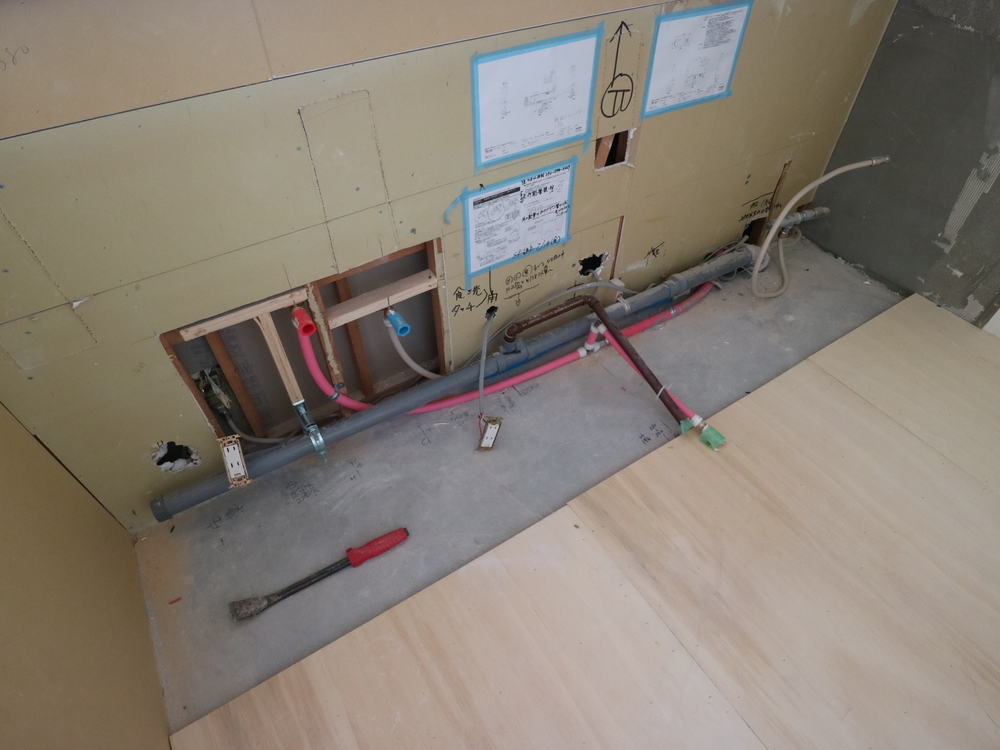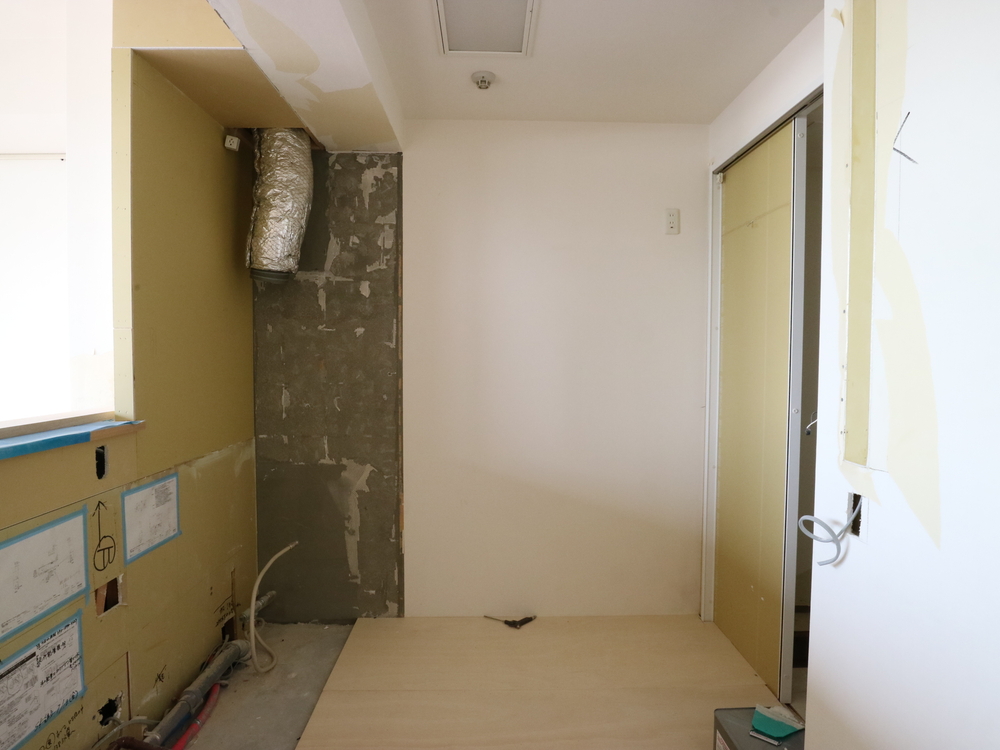 キッチンスペースの施工中