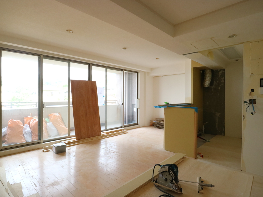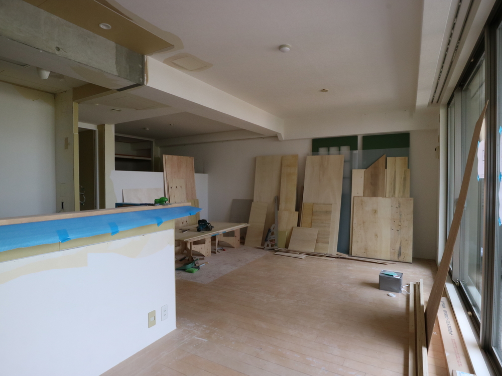 リビングの施工中
