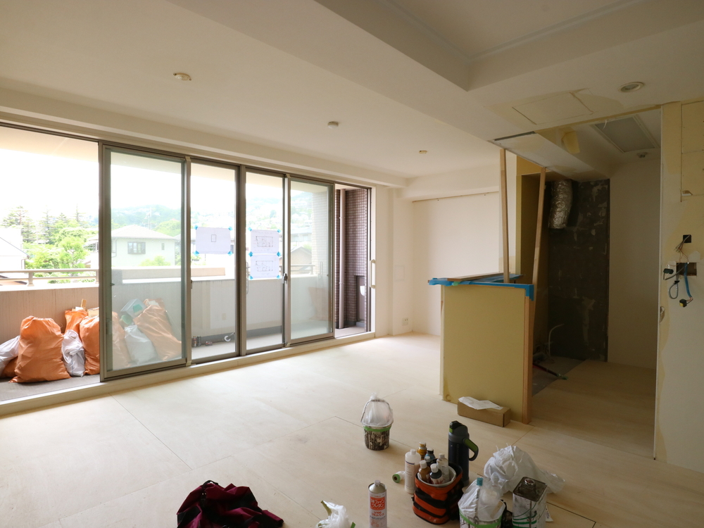 リビングの施工中