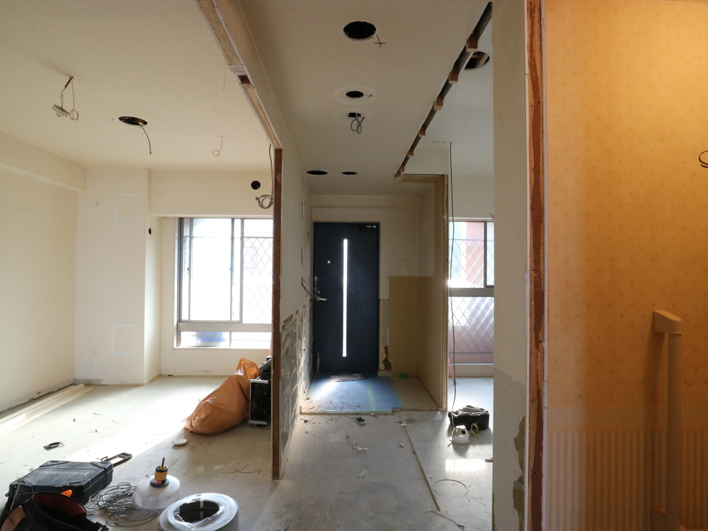 廊下の施工中