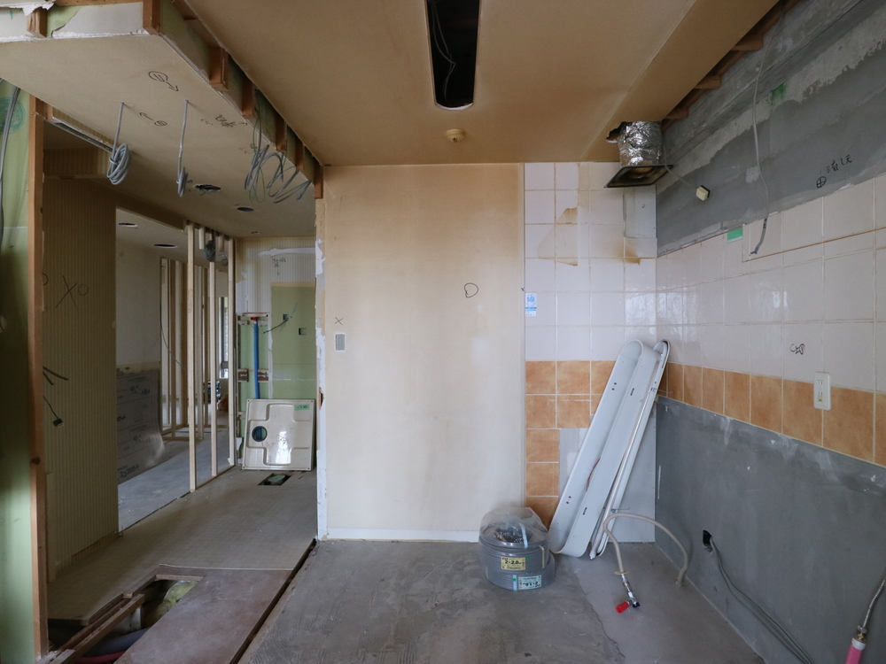 キッチンスペースの施工中