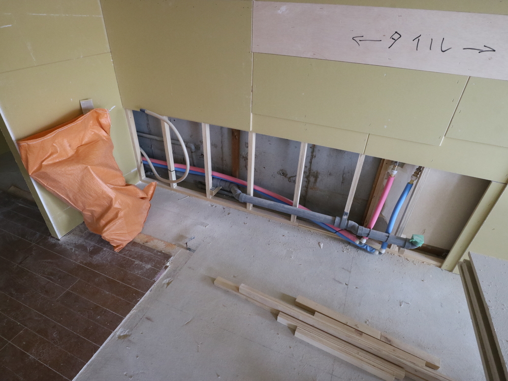 キッチンスペースの施工中