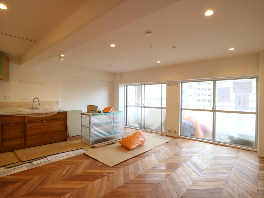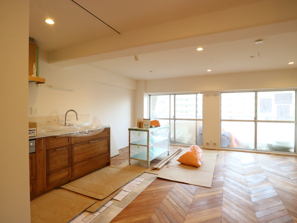 リビングの施工中