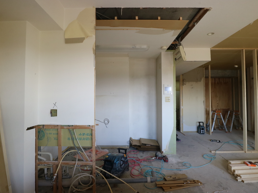 キッチンスペースの施工中