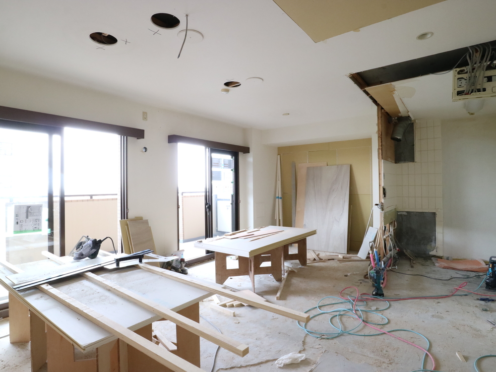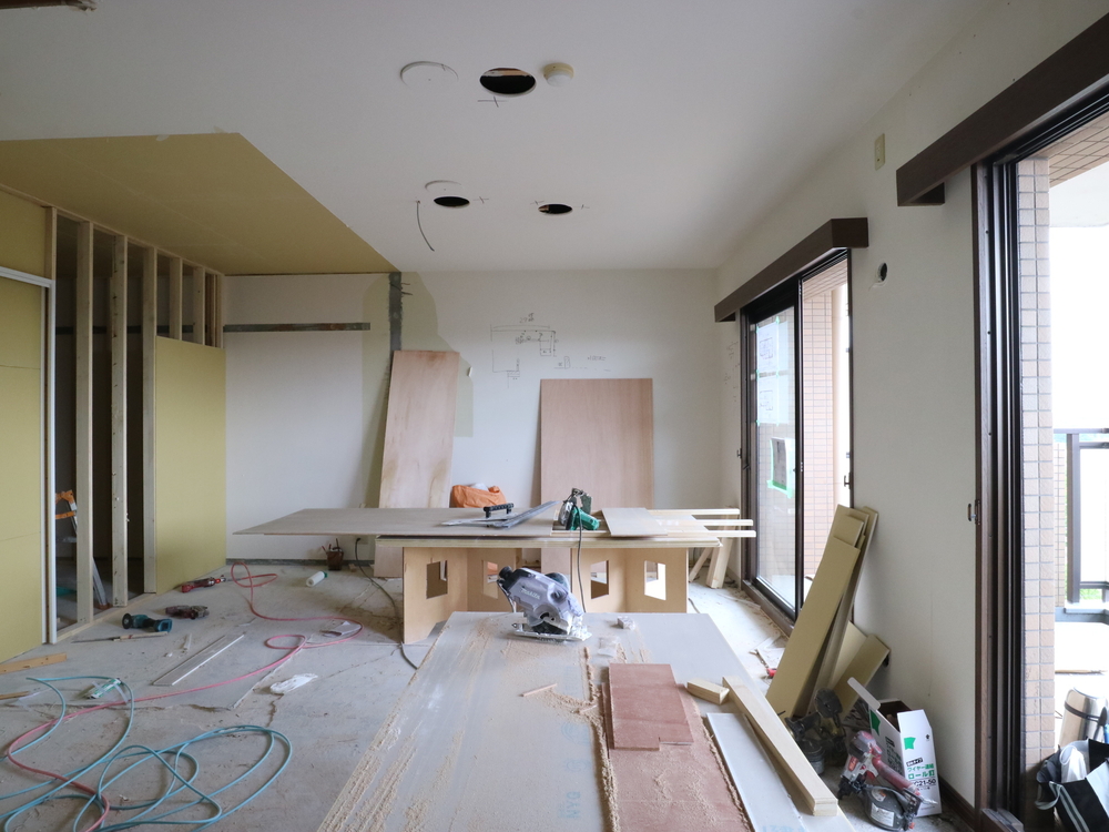 リビングの施工中