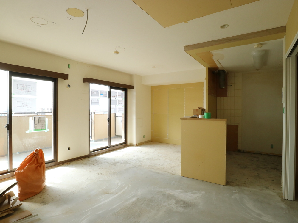 リビングの施工中