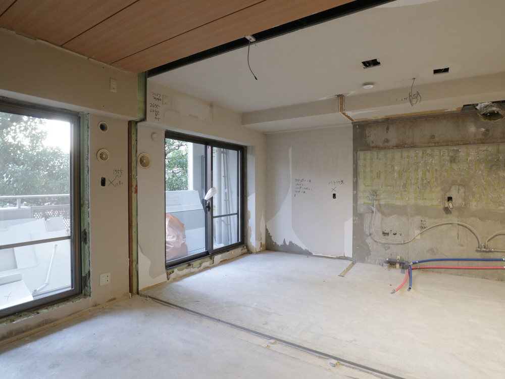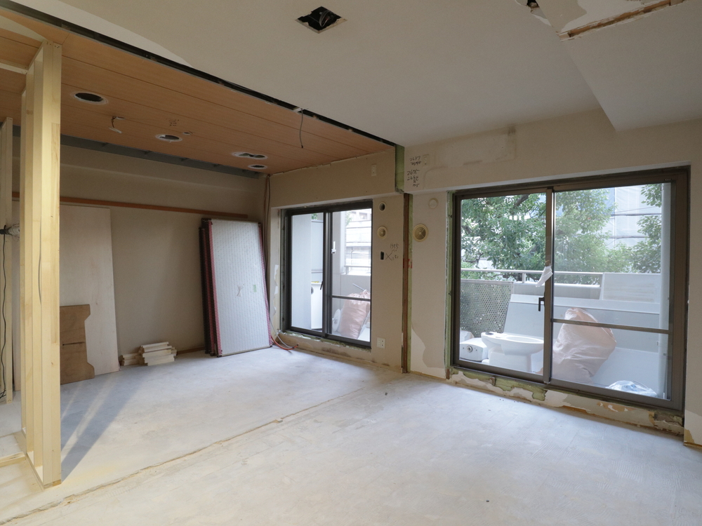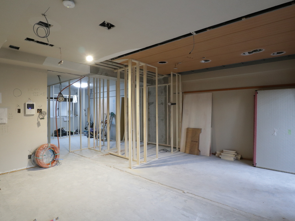 リビングの施工中