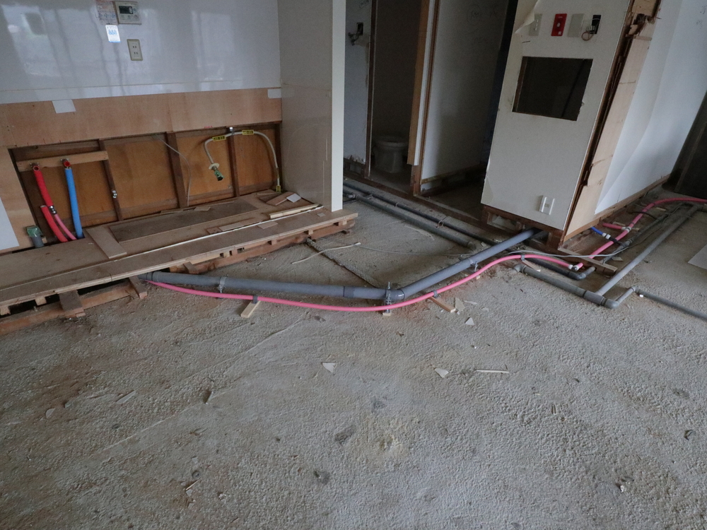 キッチンスペースの施工中