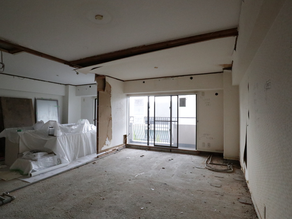 リビングの施工中