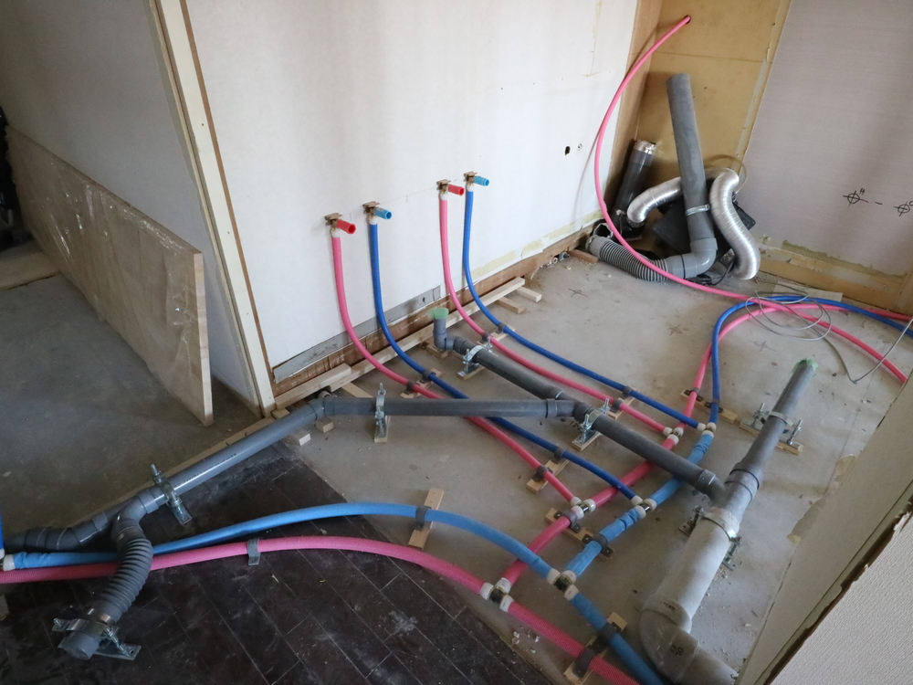 洗面室の施工中