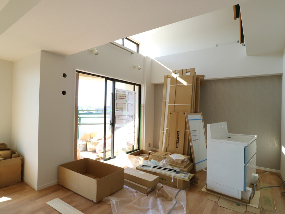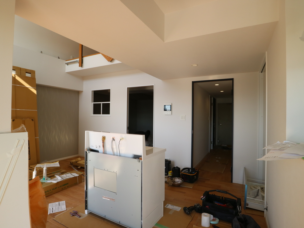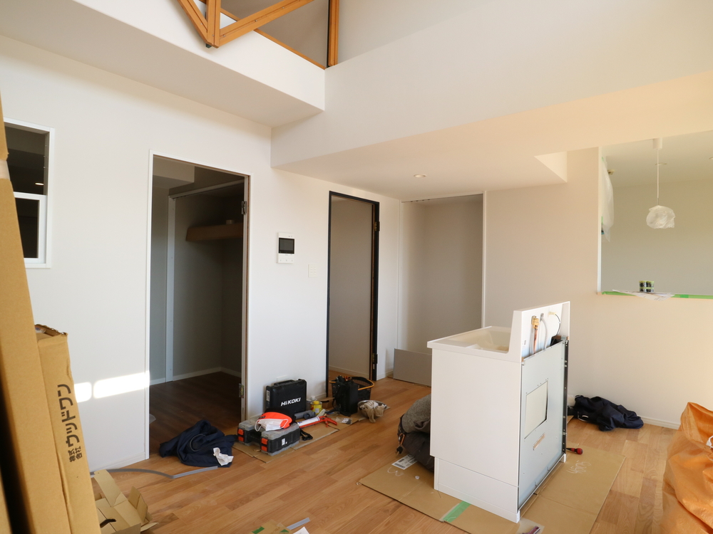 リビングの施工中