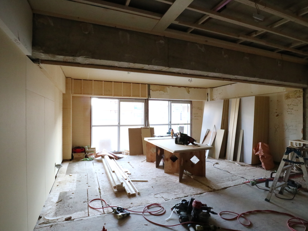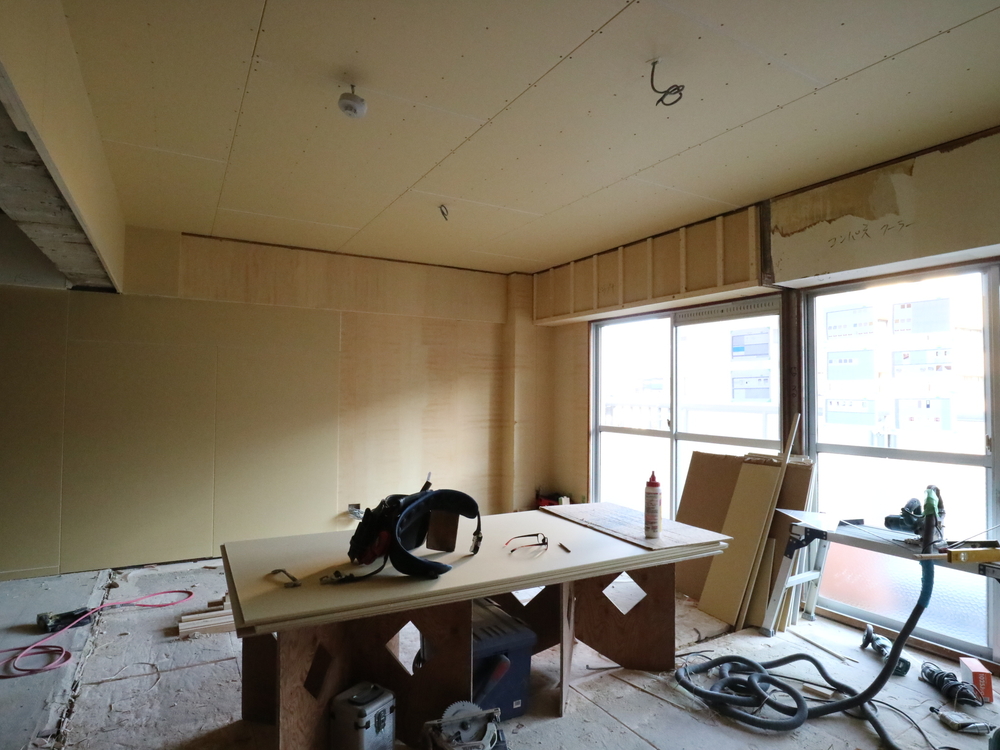 リビングの施工中