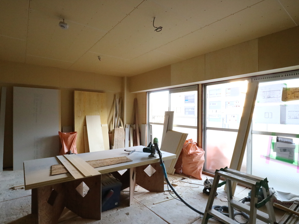 リビングの施工中