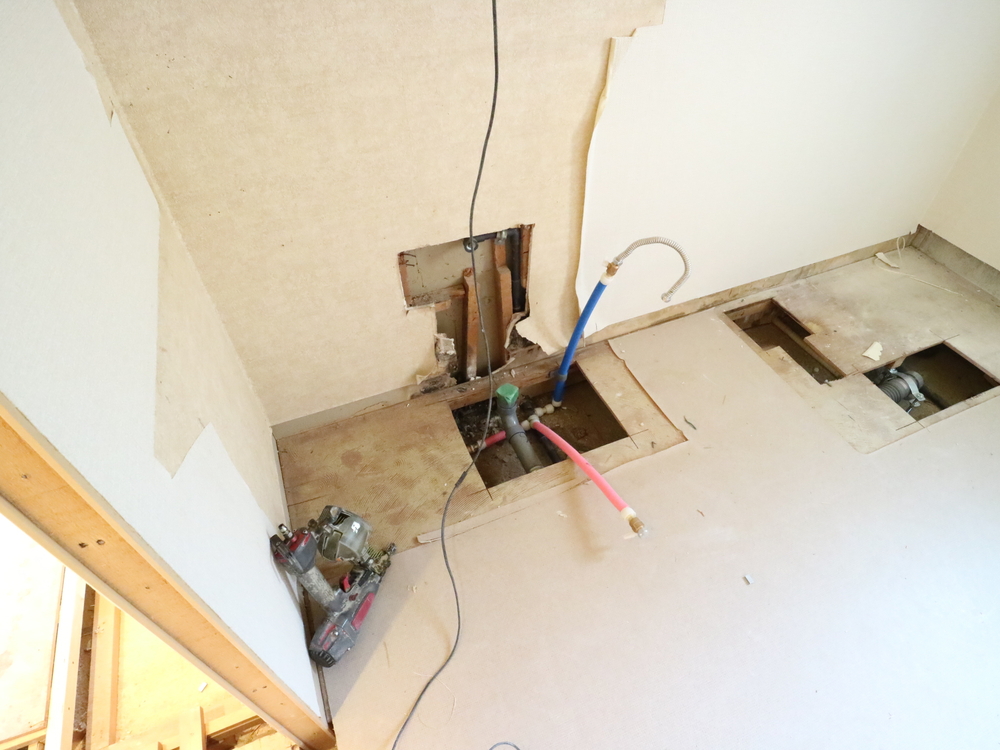 洗面室の施工中