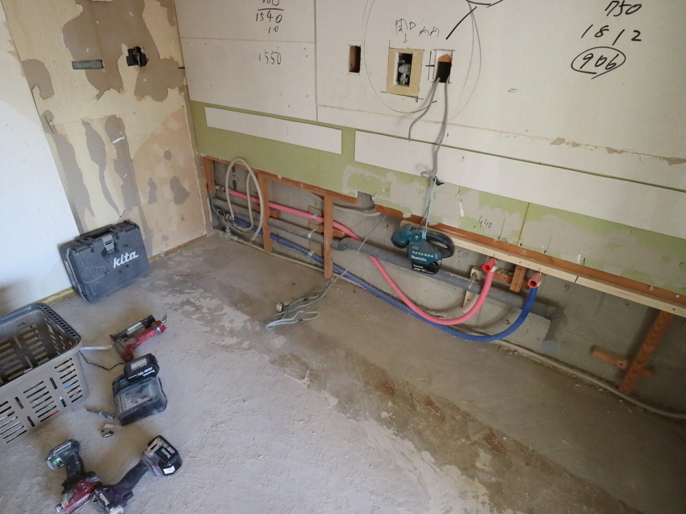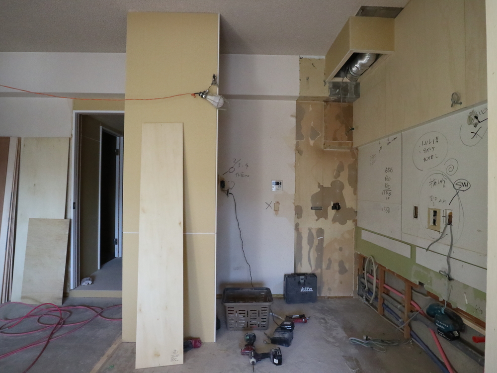 キッチンスペースの施工中
