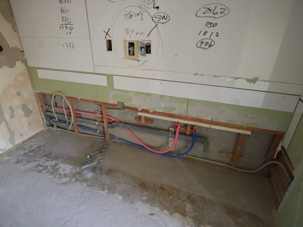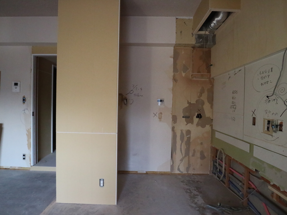 キッチンスペースの施工中