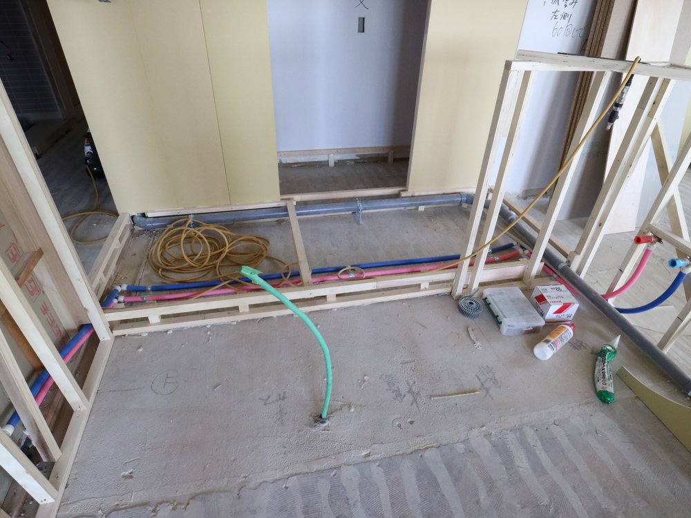 キッチンスペースの施工中