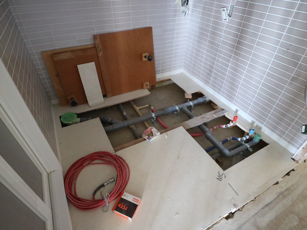 洗面室の施工中