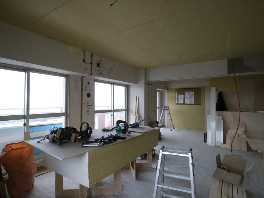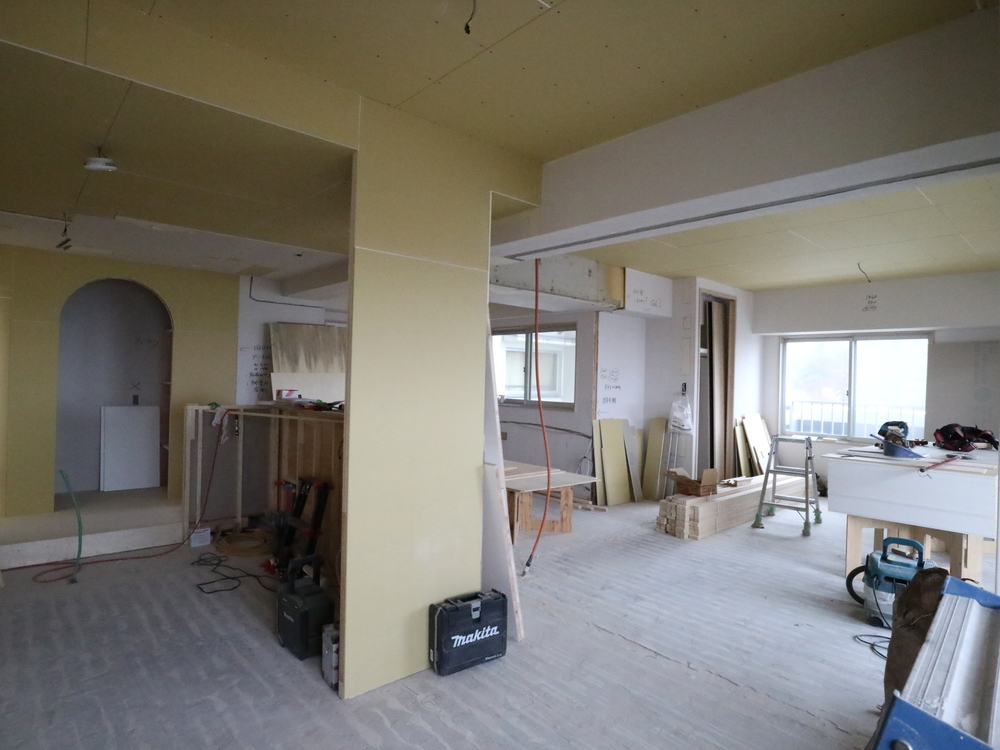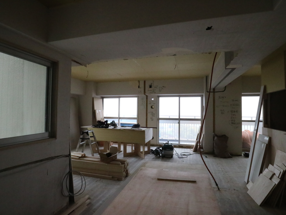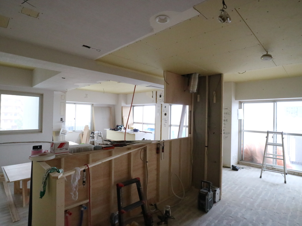 リビングの施工中