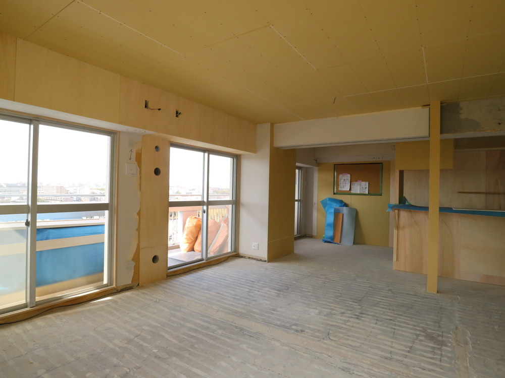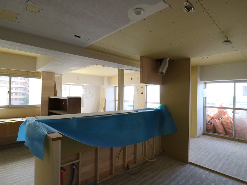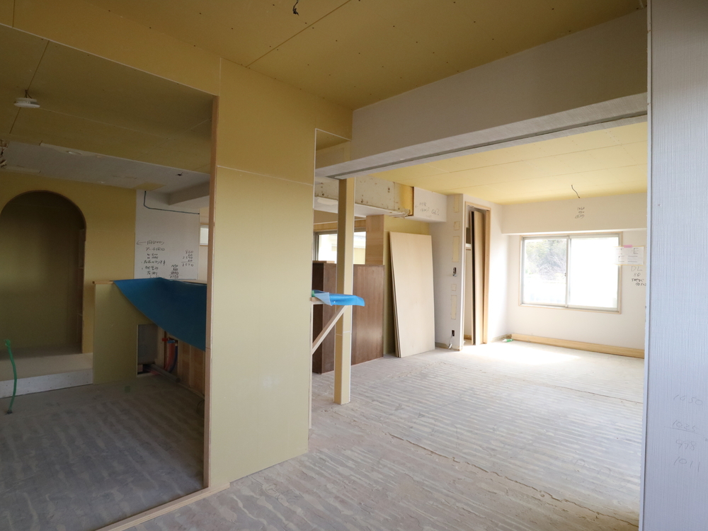 リビングの施工中
