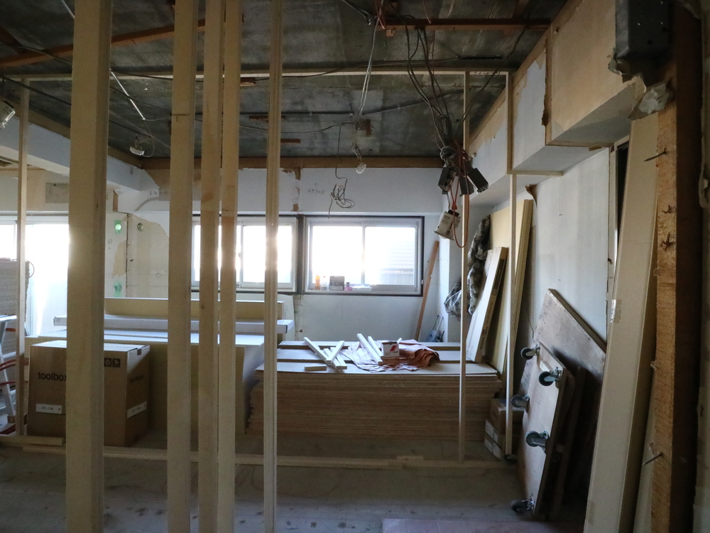 シューズクロークの施工中