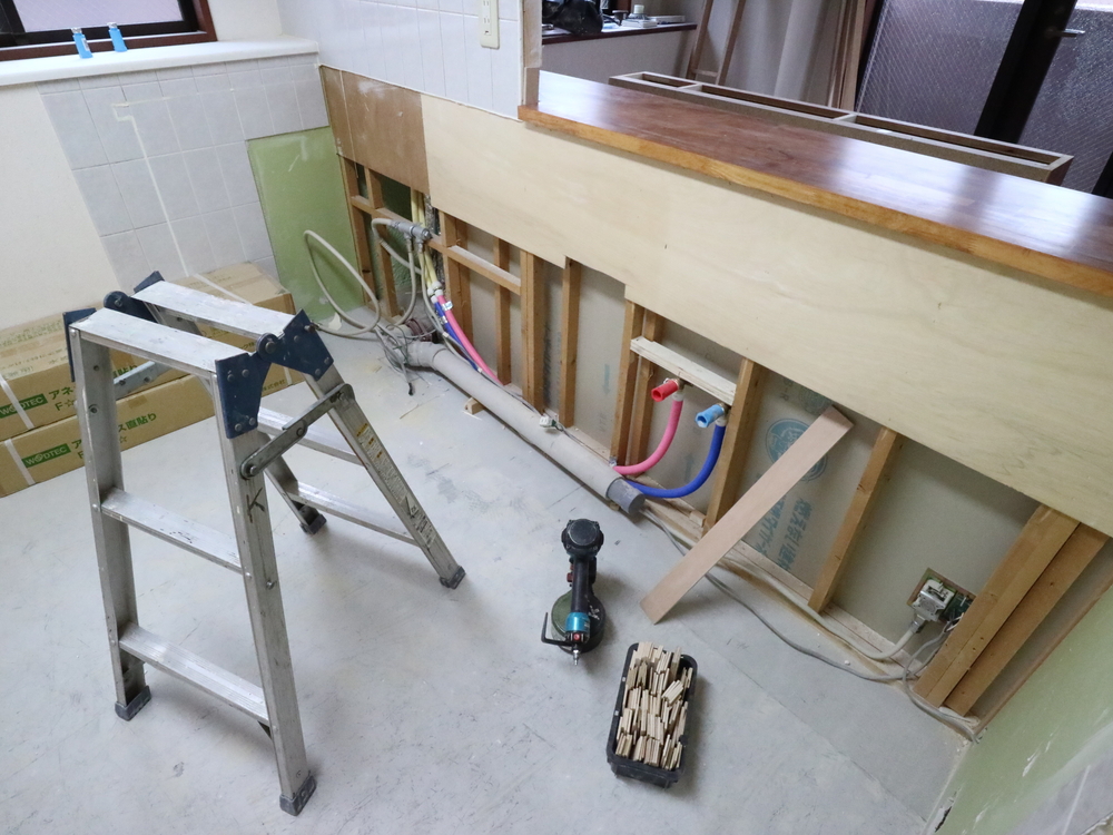 キッチンスペースの施工中